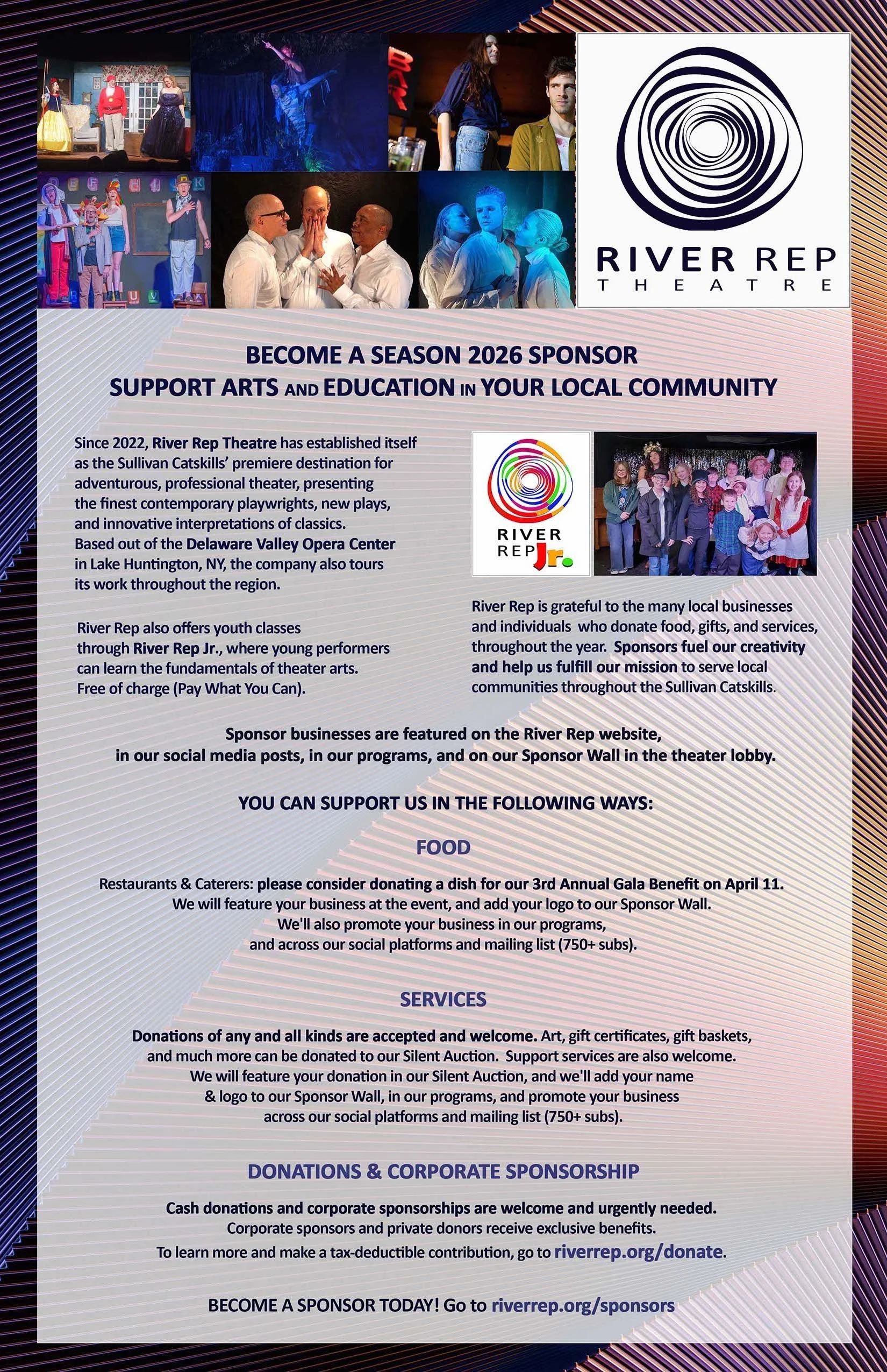 Interested in becoming a sponsor? Email us at riverreptheatre@gmail.com or call (718) 490-3050. We look forward to hearing from you!